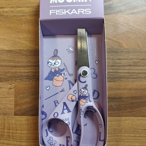 Itselläni jääneet käyttöä vaille Fiskarsin Muumin perhe-yleissakset.