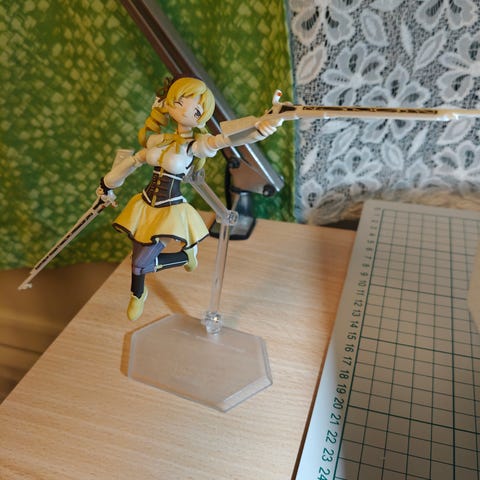 Myydään Homura Nendoroid -figuuri. Muuten hyvässä kunnossa, paitsi oikean puolisen jalan tappi on katkennut. Laitoin tilalle metallisen tapin, joka yhdistää jalan takaisin niveleen, minkä vuoksi jalkaa ei voi taivuttaa, mutta sitä voi silti hieman pyörittää sivulle.