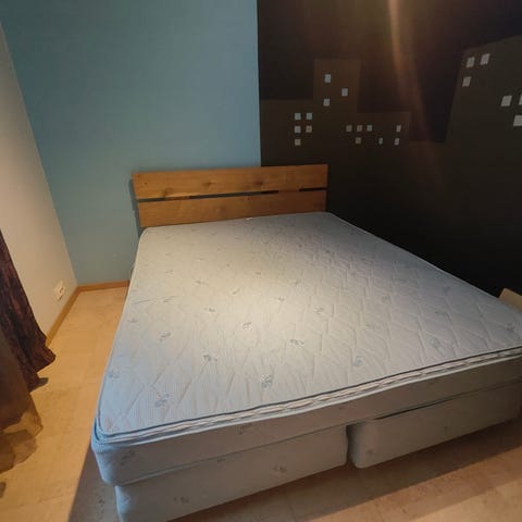 Annetaan kuvan sänky ja petauspatja. Olleet vieraskäytössä mutta jo +10v. vanha.