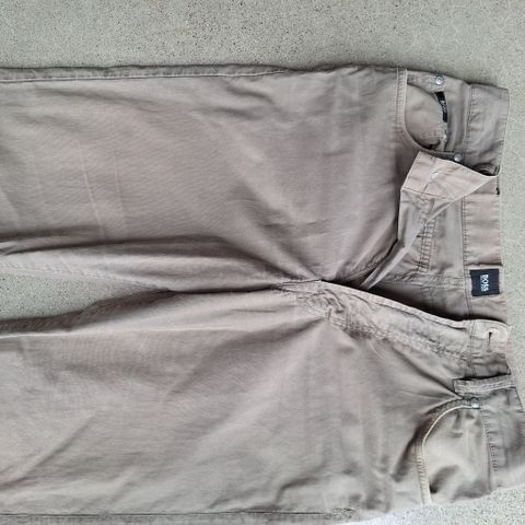 Suht vähälle käytölle jääneet Hugo Bossin farkut. Pikkuisen lahkeissa käytön jälkeä.