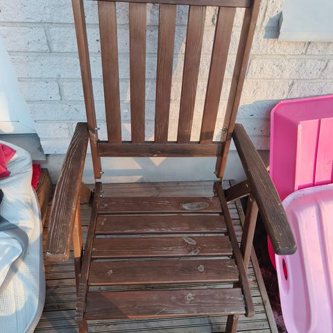 Myydän puiset aurinkotuolit/pedit. Saa laitettua selkänojan kulmaan tai suoraksi.