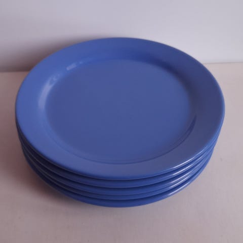Kuviot haalistuneet jonkin verran, etenkin tuo iso sininen kukka. Kuudessa lautasessa se on haalistunut merkittävästi.