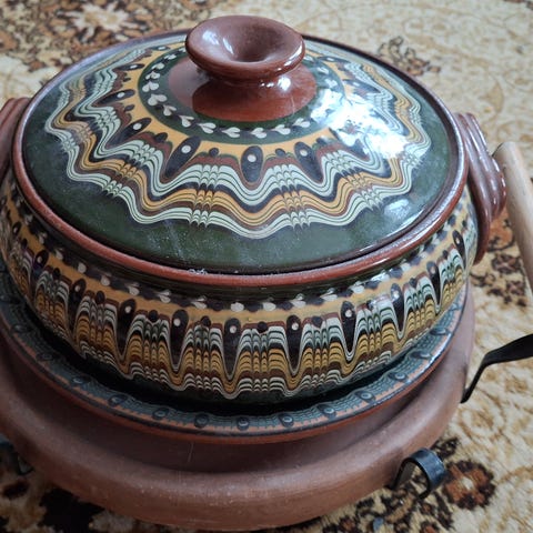 Vanha ruskea pata. Melko hyvässä kunnossa.