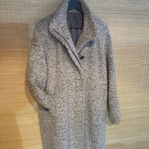 Samsøe Samsøe pitkä takki harmaassa värissä, valmistettu villasekoitteesta, malli Helle Jacket. Takki on naisten kokoluokkaa M. Takissa on pitkä malli ja se soveltuu viileämpiin säihin. Tarkoituksella OS ja kuvassa omana kohteenaan myynnissä oleva Tigerin villahuivi. Takkia on käytetty alle 5 kertaa - viat (sisävuoren nypyt ja ripustuslenkki) kuvissa. Rinnanympärysmitta n. 118 cm. Voin postittaa.