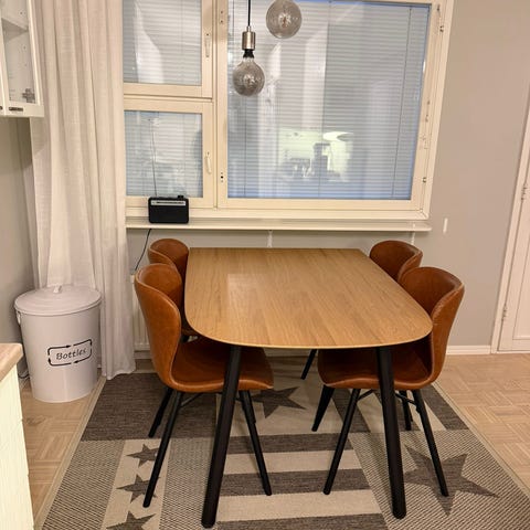 Myös kuvan tuolit myynnissä erikseen 4kpl 200€, tai pakettina pöytä + tuolit 250€.