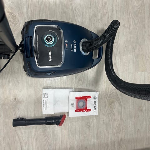 Bosch serie 6 pölynimuri. Ollut 2 vuotta vähäisellä käytöllä. Kotelon muutamaa naarmua lukuunottamatta oikein hyvässä kunnossa. Mukaan kaikki lisähärpäkkeet ja vielä 3 uutta pölypussia.