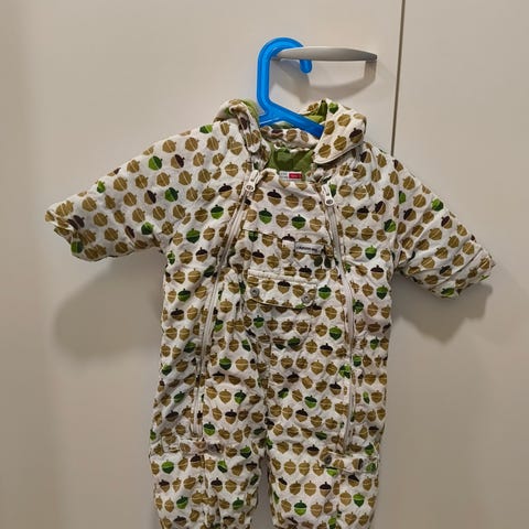 Ihana pieni välikausipuku, kevääseen, syksyyn tai viileille kesäkeleille. Molemmat jalkarenksut on ehyet