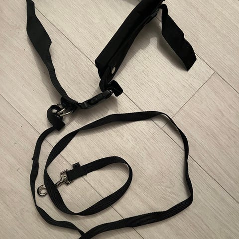 Juoksutusvyö, hihna sopii vain pienelle koiralle. Ostettu joskus Vipstorelta.