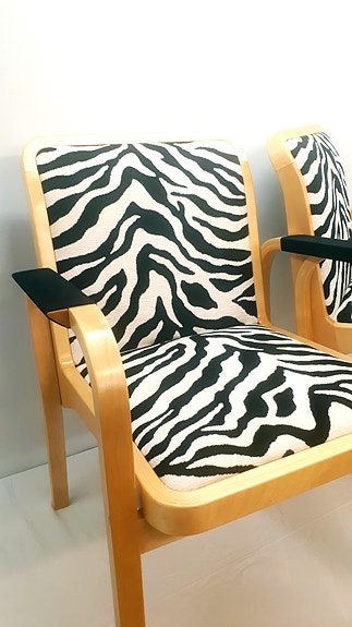 Neljä Olavi Hännisen suunnittelemaa "Tuomas"-tiikkituolia 1950-luvulta (valmistaja Huonekalu Mikko Nupponen). Tuolien tiikkirungot on kunnostettu ja tuolien verhoilu on uusittu BCI-sertifioidulla mustalla 100% puuvillalla. Tuolien rungoissa on hieman ajantuomaa patinaa.