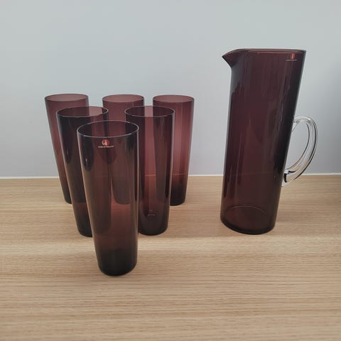 Violetti kannu ja 4kpl juomalaseja. Sarja Timo Sarpanevan suunnittelema i-350.