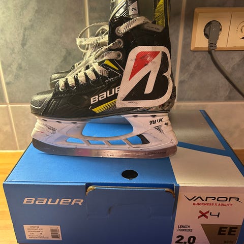 Myydään uutena ostetut, yhdellä lapsella käytössä olleet hyväkuntoiset ja siistit Bauer X-LS jääkiekkoluistimet / hokkarit, koko 37,5 (Bauerin koko 4), sisäpohjan pituus 23,5 cm. Terät hyvässä kunnossa. Terotettu viime talvena ja jääneet sen jälkeen vähäiselle käytölle sään vuoksi. Luistimissa on pehmeä sisävuori ja huopakieleke.