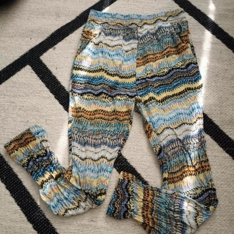 Siistit pehmeät jegginssit, nämä ovat lapsella mukavat ja taipuisat päällä. Alunperin jo kulutettu kuosi, mutta ehkä polvissa hieman pehmentymää, ehjät. Säädettävä vyötärö, tuoksuton pesu.