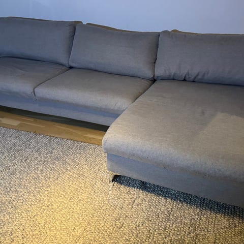 Myydään noin 7 vuotta vanha divaanisohva sekä samaan sarjaan kuuluva nojatuoli ja rahi. Divaanin puolta pystyy vaihtamaan. Kaikki tyynyt ovat käännettävät ja konepestävät. Divaanin syvyys 130 cm. Myydään mielellään yhdessä, mutta tarvittaessa voidaan myydä sohva erikseen. Vain nouto.