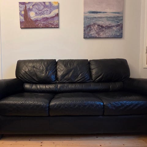 Todella hyväkuntoinen ja napakka musta Hjort Knudsen (Danish Design) kahdenistuttava nahkasohva. Sohva on ollut aikuistaloudessa vähällä käytöllä.