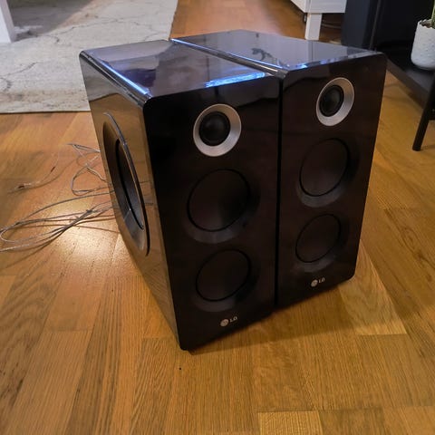 LG Kaiuttimet 4 kpl 20 €. (Kuvassa näkyvä subwoofer, ja kaiutin eivät sisälly hintaan.)