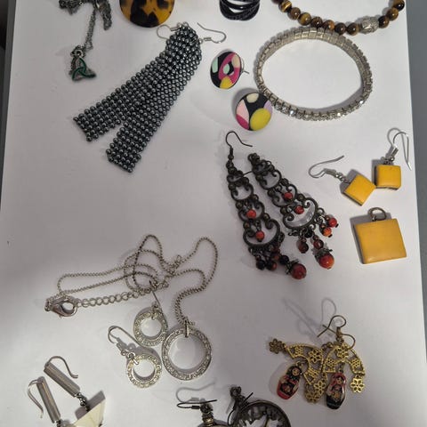 Diana tyyliset korut. Sormuksen koko 19. Korumetallia.