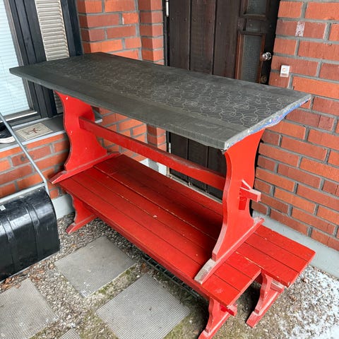 Upea kuvan pirttipöytä myytävänä. Kunto hyvä. Runko erittäin tukeva. Ajan tuomia jälkiä / kolhuja.
