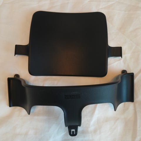 Stokke syöttötuolin lisäosat, valkoinen väri. Osat on valmistettu kestävästä muovista ja ne on suunniteltu käytettäväksi Stokke syöttötuolin kanssa.