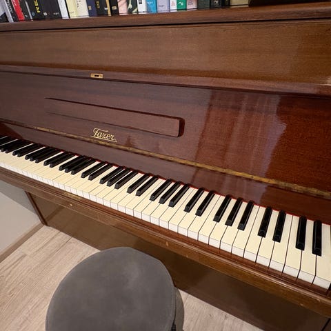 Siro Hellaksen piano, korkeus 84 x leveys 107 x syvyys alaosa 30.