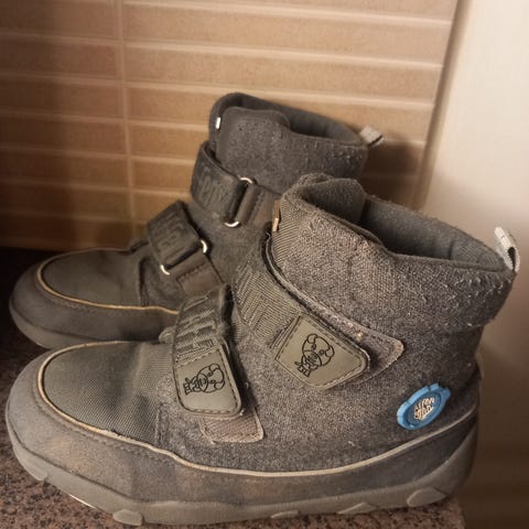 Yhden talven käytetyt paljasjalkatalvikengät. Koko 32. Nauhoissa pientä rispautumista. Eivät enää uudet mutta oikein käyttökelpoiset seuraavallekin.