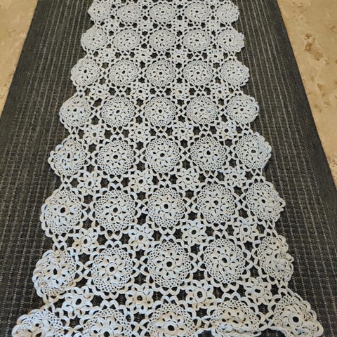 Myydään uusi punainen pöytäliina – kudottu Aidaboordi & tähtikuosi