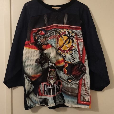 Florida Panthers Barkov pelipaita. Kiinakopioksi ihan OK. Koko L Kaipaa vähän silitysrautaa :)