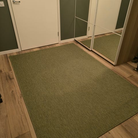 Myydään vihreä nukkamatto, koko 140×200 cm.