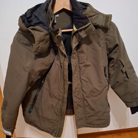 Edessä vetoketju ja napit. Hyvää kuntoinen takki,hupullinen.