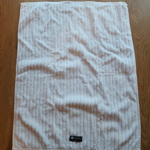 Luhta home vaaleanvihreä pyyhe. Käytetty kunto, pieni likatahra ja hiukan rispaantuneet reunat.