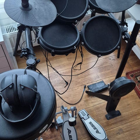 Alesis DM10 sähkörumpusetti sisältää rumpupadit ja ohjausyksikön. Mukaan tulee millenium pro tuplabedaalit ja vaihtokalvoja. Alkuperäiset ohjeet yms löytyy. Mielellään haku mutta kulkeutuvat viikolla myös oulun alueelle.