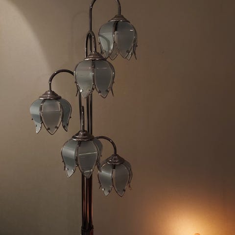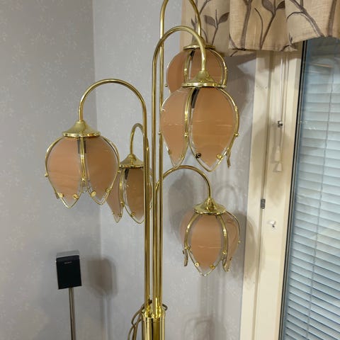 Ostan kuvan mukaisen kissankello-tyylisen valaisimen. Etsinnässä erityisesti juuri tämä sävy: lämmin oranssinpunertava / korallinen lasi.