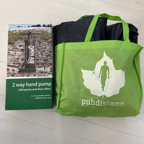 Myydään toimiva pumppu ja kaksi ehjää ilmapatjaa.