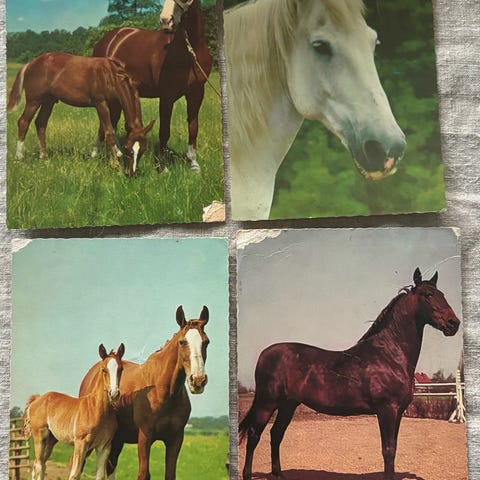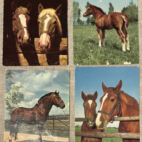 Kortit ovat olleet liimattuna kartonkiin, joten taustapuolen kunto on huono (näkyy kuvissa).