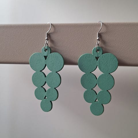 Myydään puiset käpykorvakorut, suomalaista käsityötä (ideabutiikkioy.etsy.com). Ei sisällä nikkeliä.