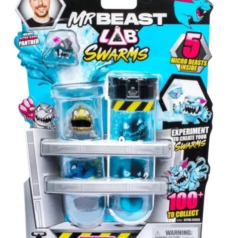 EAN / GTIN: 630996247440 Sukella MrBeast Labin jännittävään maailmaan! MrBeast Lab Swarms -tuote yhdistää keräilyn ja hauskan kokeellisen leikin. Lisää vettä, seuraa reaktiota ja paljasta Swarms-hahmot, jotka tekevät jokaisesta avauksesta yllätyksen. Tämä tuote sopii erinomaisesti lapsille, keräilijöille ja MrBeast-faneille, jotka nauttivat yllätyksellisistä ja interaktiivisista leluista. ⭐ Ominaisuudet Keräiltävä MrBeast Lab Swarms -tuote Yllätyksellinen avauskokeen avulla Mahdollisuus löytää harvinaisia hahmoja Sopii leikkiin ja keräilyyn 📦 Pakkauksen sisältö Swarms-hahmoja (määrä mallikohtainen) Koeputki / säiliö Kokeeseen tarvittavat materiaalit Ohjeet 👶 Ikäsuositus ja turvallisuus Ikäsuositus: 5 vuotta + Sisältää pieniä osia – ei alle 3-vuotiaille