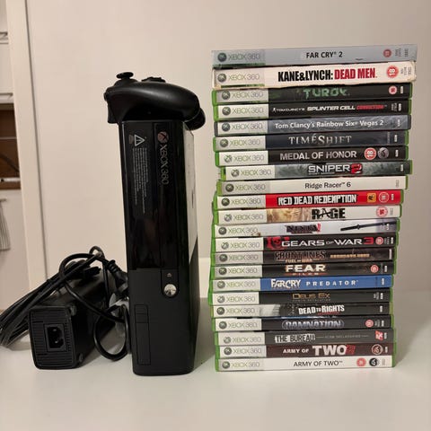 Xbox 360+Wifi+2 ohjainta+16 peliä