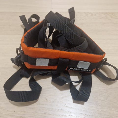 Harjoitteluvaljaat lapselle lasketteluun. Kiinnitetään lapsen vyötärölle säädettävän vyön avulla. Klipsit molemmilla puolilla sekä jalkaremmille jalkojen välistä. Valjashihna kiinnitetään metalliklipseillä vyötärön molemmin puolin. Hihna on U-lenkki, jossa vahvistetut, pitävät kohdat käsille. Hihnan voi pakata vetoketjutaskuun, kun se ei ole käytössä.