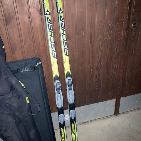 Sukset 185cm paikkeilla ja sauvat 165cm