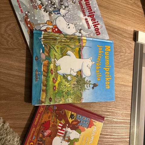 Muumikirjan kantta hieman jouduttu paikkailemaan. Pikkuruisten iltasadut kirja ei enää priimakuntoinen mutta luettavissa