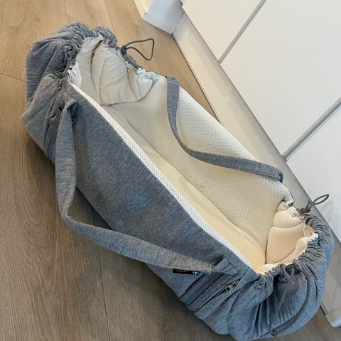 Hyväkuntoinen siisti unipesä/kantokassi. Pesty myyntiä varten hajusteettomalla pesuaineella. Meille tullut käytettynä, niin täysin tuoksutonta historiaa en voi taata.