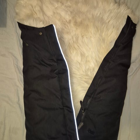 Lampaantaljalämpöpussi, päälliosa untuvatäytteinen, vetoketjuilla kaikki osat irrotettavissa. Lampaantaljaosaa voi käyttää myös sellaisenaan rattaissa, pulkassa. Pussissa on aukot valjaille sekä rattaiden selkäosaan kiertävä venyvä tuki, jotta pysyy paikoillaan. Taljan takaosa on liukumisen estävää materiaalia. Lampaantalja lämmittää ihanasti pakkasilla, muttei tunnu hiostavalta lauhemmallakaan säällä.