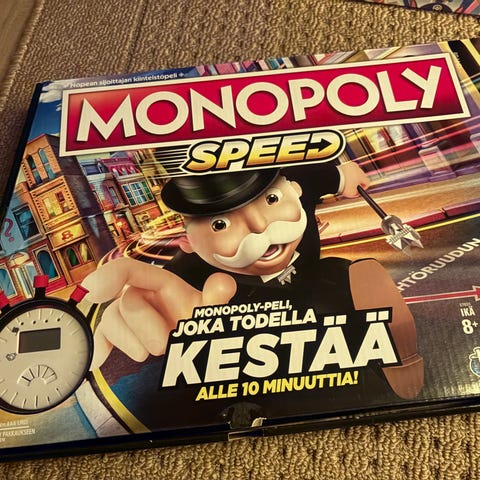 Monopoly Grab & Go lautapeli, jossa on matkakokoinen pakkaus.