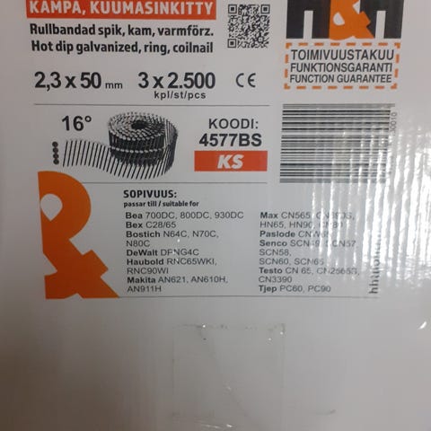 Runkonaula Aerfast 90 x 3,1 mm naulat 34° kulmassa, kuumasinkitty sileä liimalla.Täysi laatikko 2000 kpl.