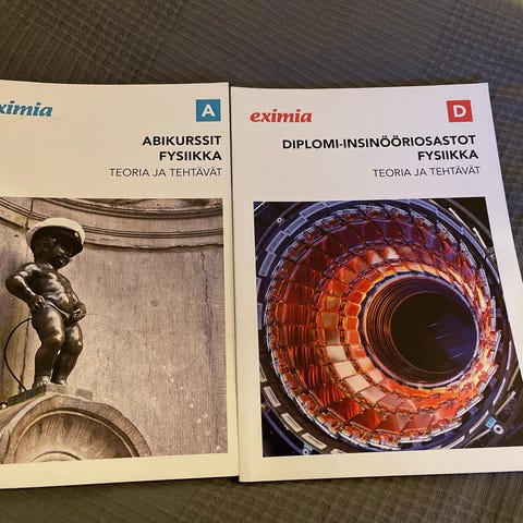 Eximian kirjat 10e/kpl. Sisältää teorian sekä tehtäviä, varsin hyviä pääsykokeisiin pänttäämiseen, miksei ylppäreihinkin.