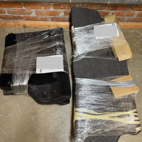 Itsetehty keskikonsoli jossa avautuva säilytyslokero. Nahka tummansinistä.
