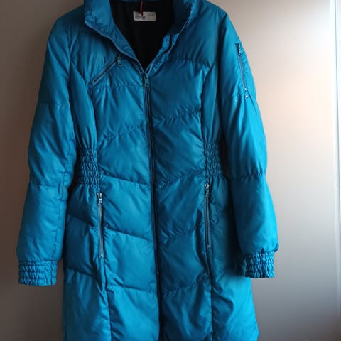 Yksittäisiä kertoja käytössä ollut Reflex- untuvatakki, irrotettava huppu. Edessä taskut. Takissa ei mitään isompia jälkiä, ainoa miinus on että hupun kiristys kuminauha tarvii vaihdon. Erittäin lämmin talvitakki