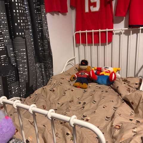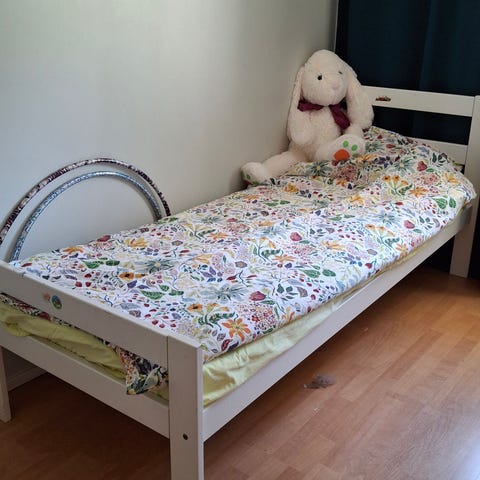 Sängyn alapuolella vedettävä iso laatikko johon saa logoja / leluja.