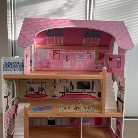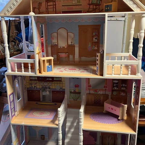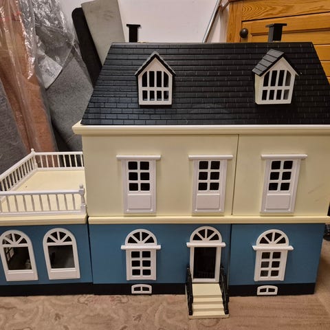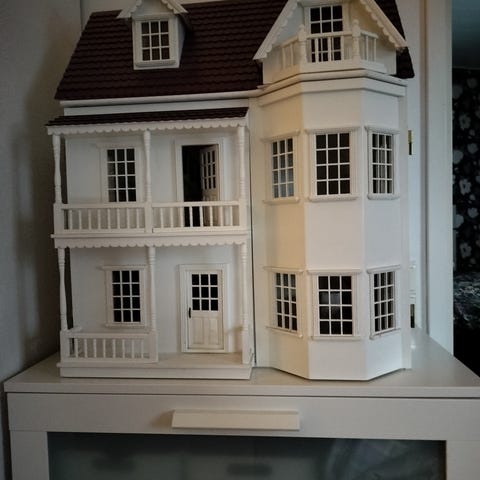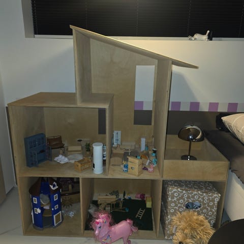 Puusepältä teetetty iso vanerinen nukkekoti