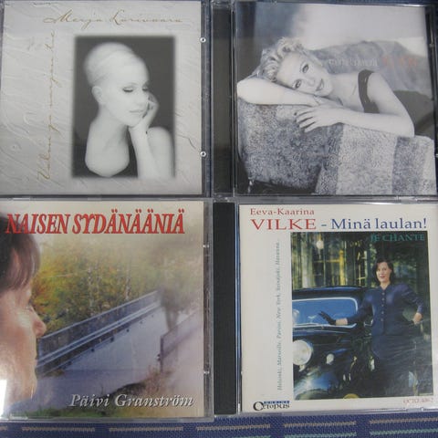 Myydään cd-levyjä 2,00 euroa kappale. Kaikki cd:t kuunneltu ja todettu toimiviksi. Cd:ssä voi olla naarmuja & kansipapereissa jälkiä/omistuskirjoituksia, mutta cd-kotelot ovat ehjät. Postituskulut ostajalle ja noutokin sovittavissa.