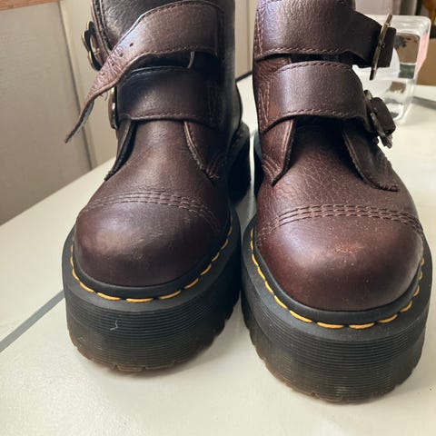 Siistissä kunnossa olevat nahkaiset Dr. Martens platform-maiharit irrotettavalla etuvetoketjulla.